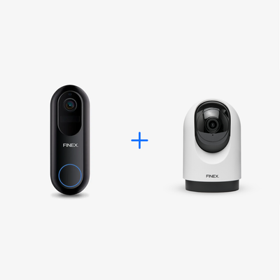 Verwalten Sie beide Geräte in der Finex-App. Sehen Sie sich Livebilder an, erhalten Sie Benachrichtigungen und teilen Sie den Zugriff von einem Ort aus.