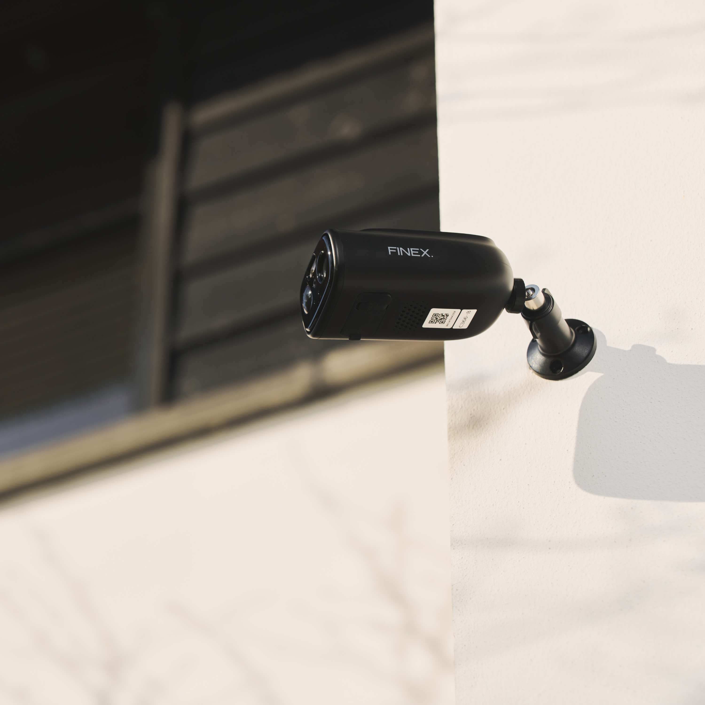 The Finex Solar Security Camera operates completely wirelessly thanks to its built-in battery, which lasts 2 to 3 months without recharging. The integrated solar panel continuously charges the battery, ensuring reliable security at all times – without a power connection.